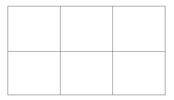 Ta chia chiều rộng thành 2 phần, chiều dài thành 3 phần. Các phần đều bằng nhau như hình vẽ: