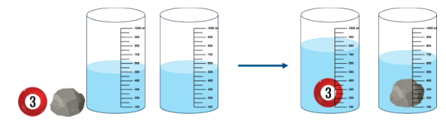 Khi thả viên bi và viên đá vào nước thì nước dâng lên.