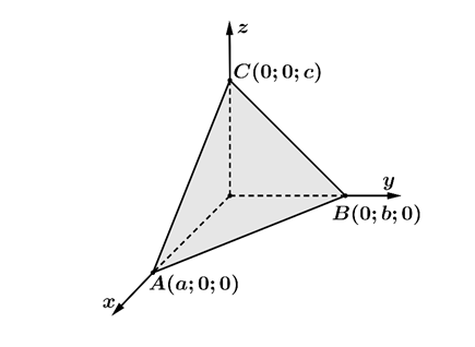 Phương trình tổng quát của mặt phẳng (α) đi qua ba điểm A(a;0;0),B(0;b;0),C(0;0;c) là: