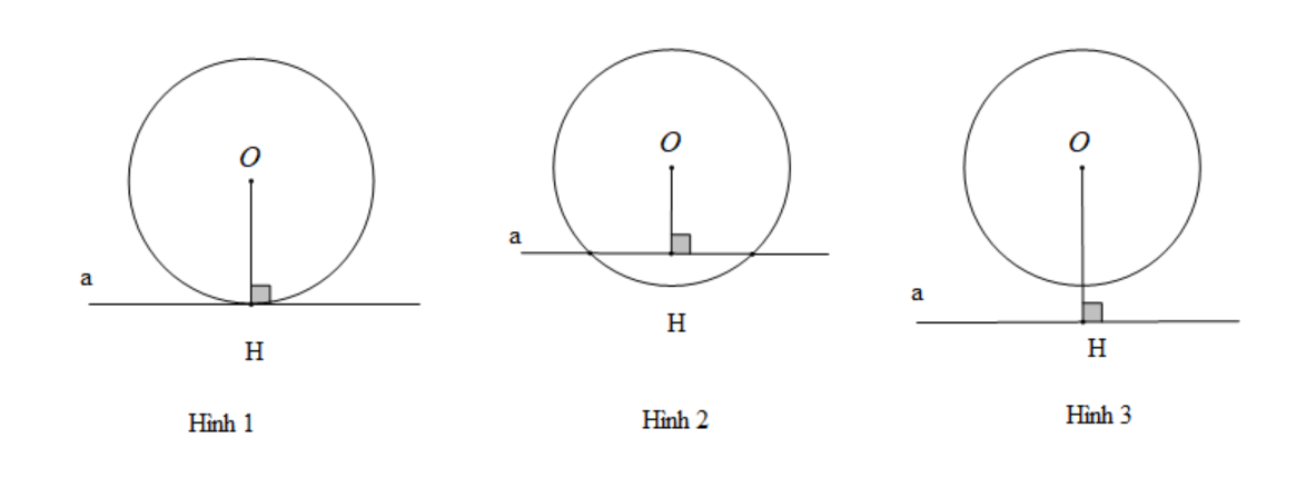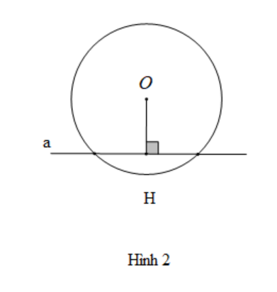 Cho điểm O và đường thẳng a không đi qua O. Vẽ điểm H là hình chiếu của O lên đường thẳng a. Từ đó, vẽ đường tròn tâm O cắt đường thẳng a tại hai điểm phân biệt. Hình vẽ nào dưới đây biểu diễn ĐÚNG?
