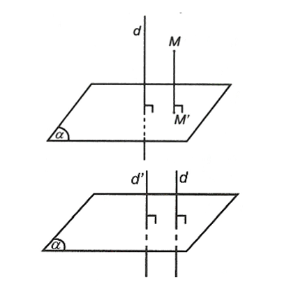Cho đường thẳng d⊥(α). Phép chiếu song song theo phương d lên mặt phẳng (α) được gọi là phép chiếu vuông góc lên mặt phẳng (α)